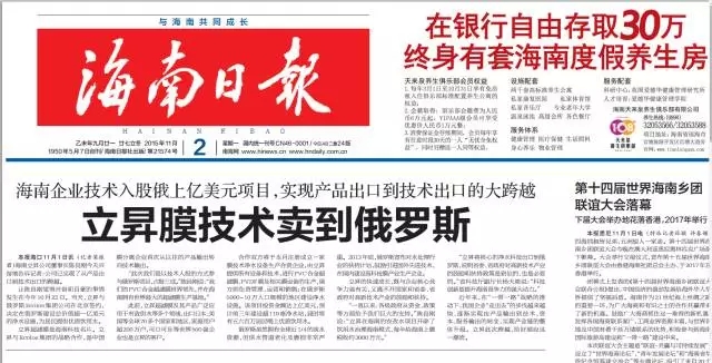 立昇超濾膜是海南科技名片。立昇與Ecolos集團的戰(zhàn)略合作,是中國膜分離企業(yè)首次從以往的產(chǎn)品輸出轉(zhuǎn)向技術(shù)輸出。